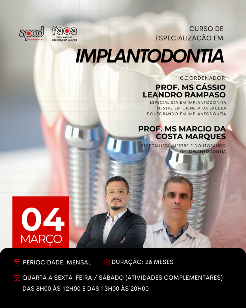04/03 – CURSO DE ESPECIALIZAÇÃO EM IMPLANTODONTIA